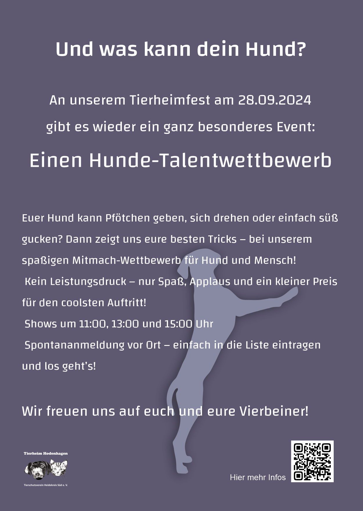 Plakat für den Tag der offenen Tür des Tierheimes Hodenhagen
